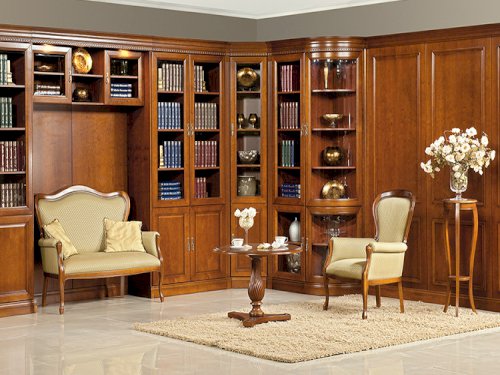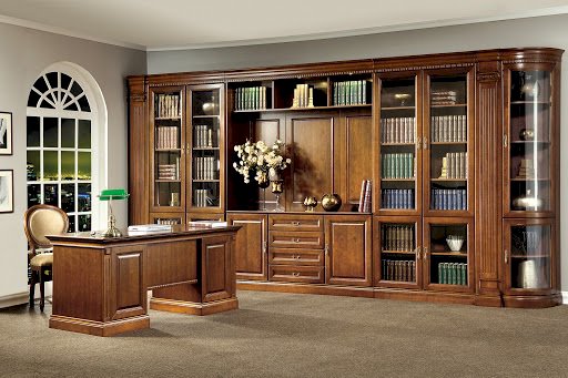 klasyczny – masywne biurka, ciemne drewno, eleganckie detale,