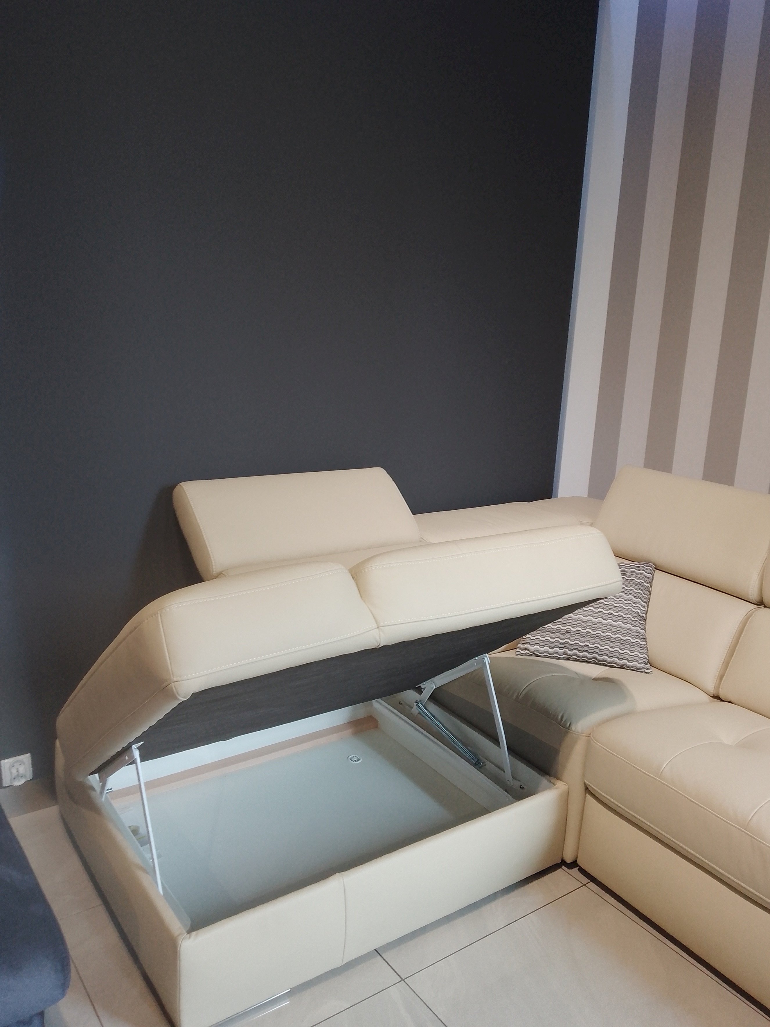 Mechanizm składania i rozkładania funkcji spania w narożniku Belluno jest niezwykle prosty w obsłudze, umożliwiając spontaniczne przenocowanie gości. Dodatkowo, pojemnik na pościel w narożniku pozwala na przechowywanie zapasowej pościeli czy koców, co jest nie tylko wygodne, ale także pozwala utrzymać porządek w pomieszczeniu.
